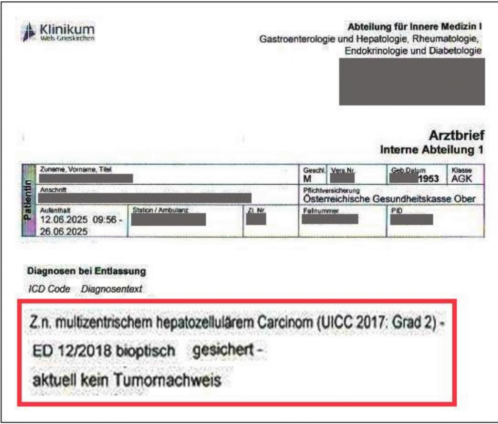 In June 2025, another examination confirmed: “No tumor currently detectable.”
